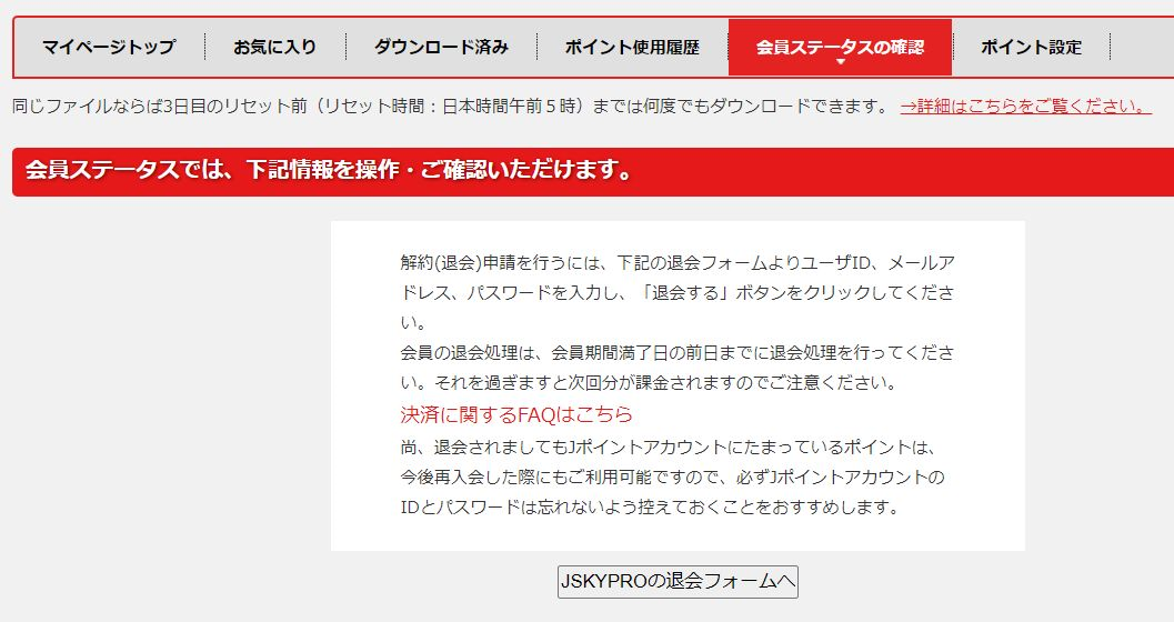 最後に東京熱にログイン後、マイページから「会員ステータスの確認」をクリックすることで、退会フォームへ移動できます。