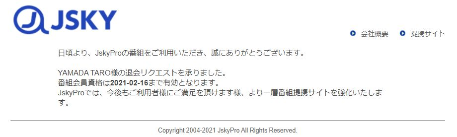 その後登録したメールアドレスに、退会完了メールが届きます。